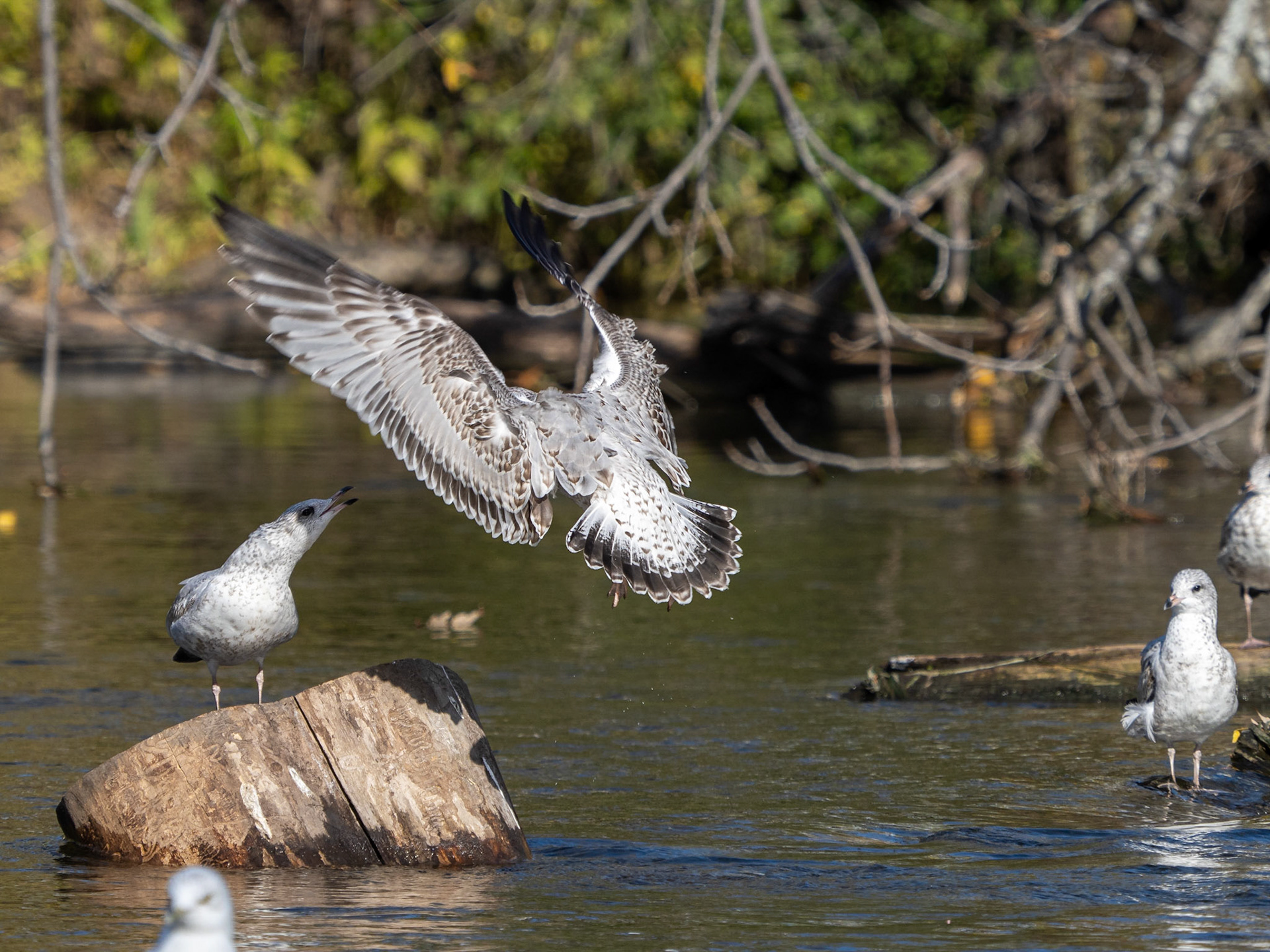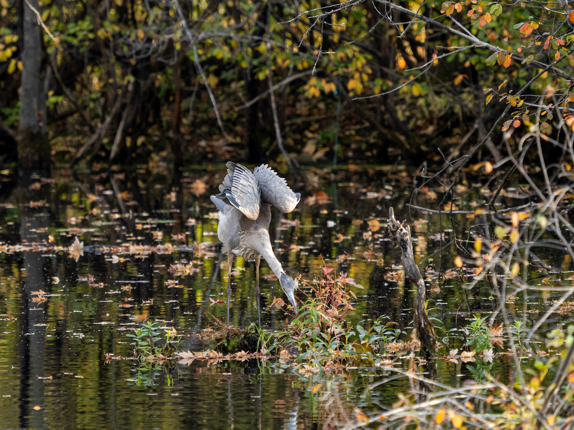 Juvenile heron, wood ducks, American widgeon, Gertrude the turkey, male cardinals, chickadees providing me with more practice, some ring-billed gulls and Canada geese.