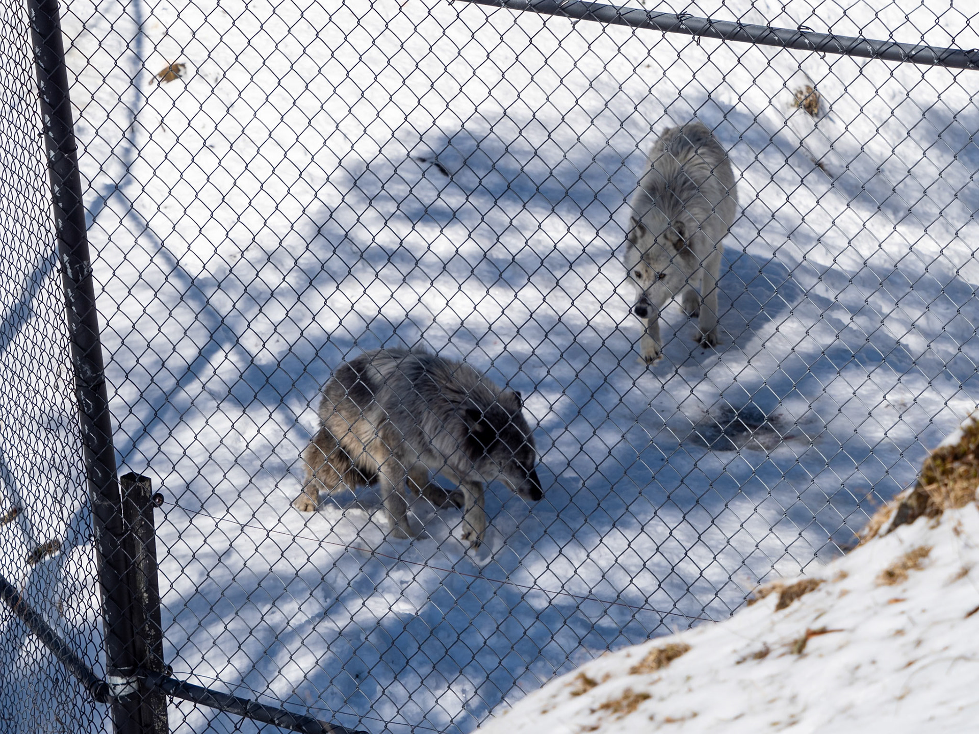 You'll see in the video that there must have been a recent fight amongst the pack. One wolf was showing fresh blood on both his cheek and back leg (which he could not walk on)
