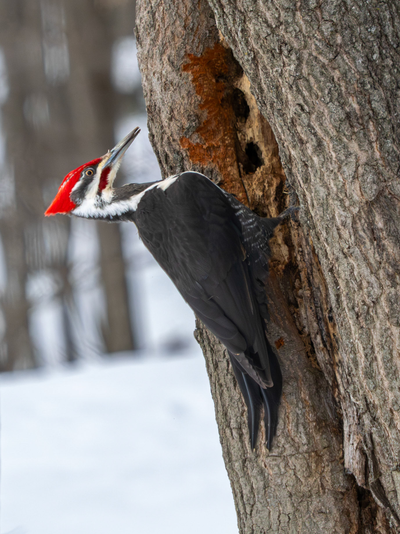 A pileated woodpecker at Parc Omega was quite co-operative to stay low, and closeby. A hairy woodpecker was about as well.
