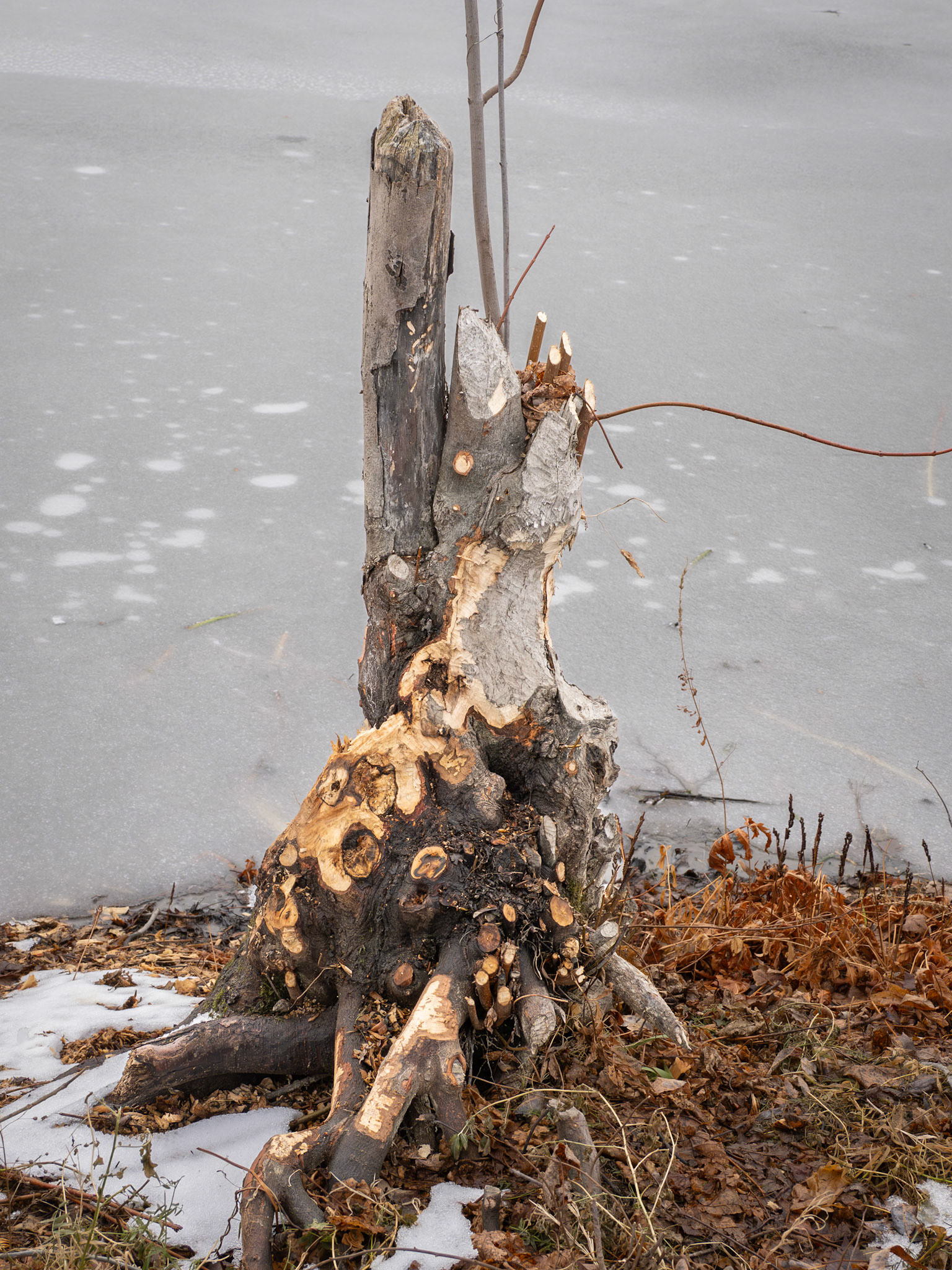 The beavers at Petrie Island have been busy sculpting some trees into grotesque shapes. This is but one example of many. Most of the trees survive to grow again in spring, some don't.