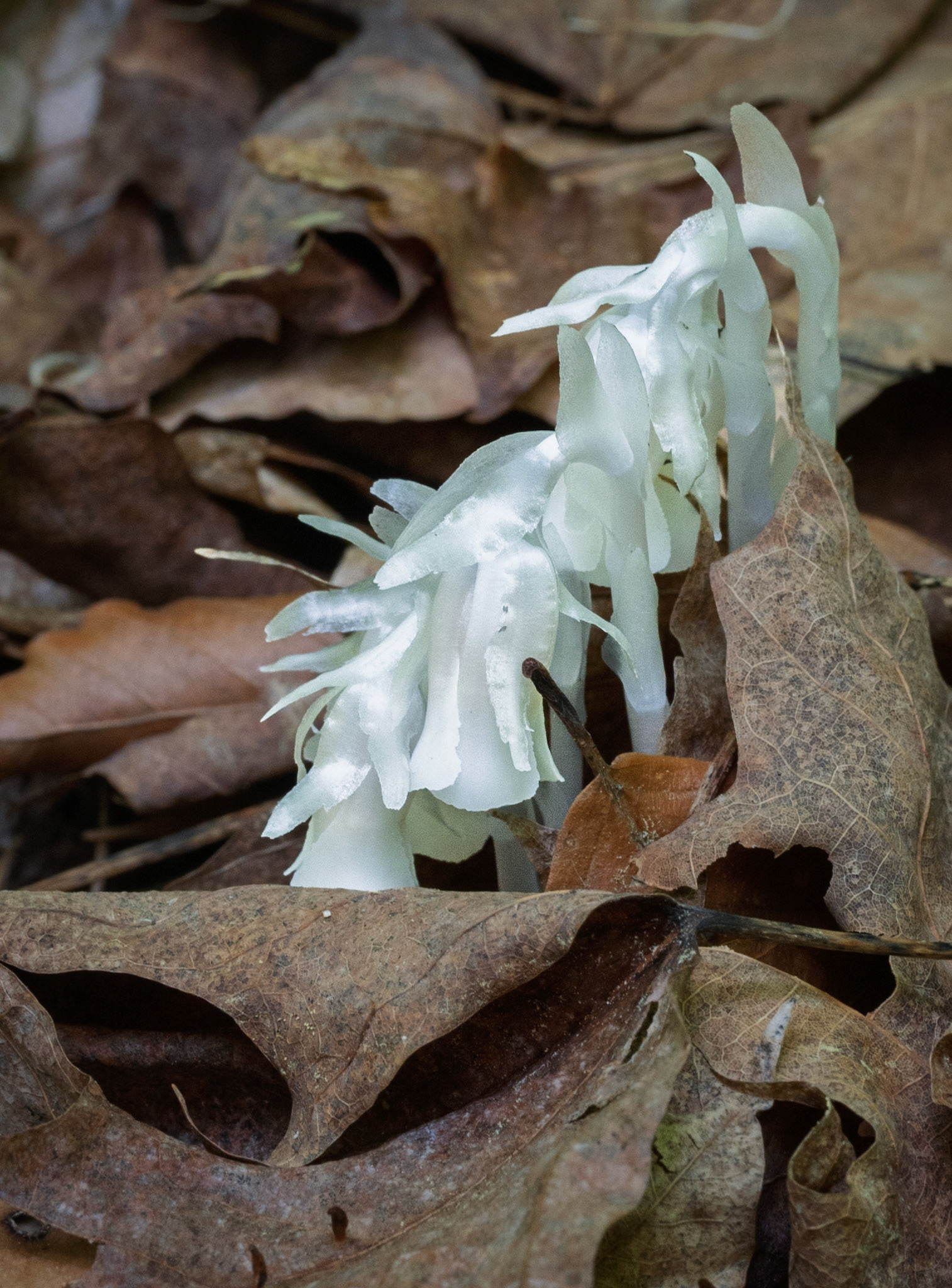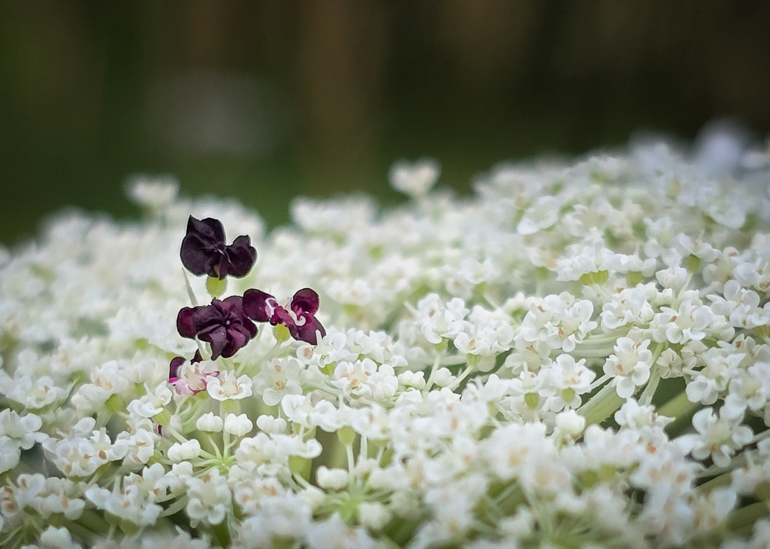 Indian pipes always catch my eye. Queen Anne's Lace often have a purple dot in the middle of the bloom, this one's purple dot deemed to be accentuating itself above the main blossom.