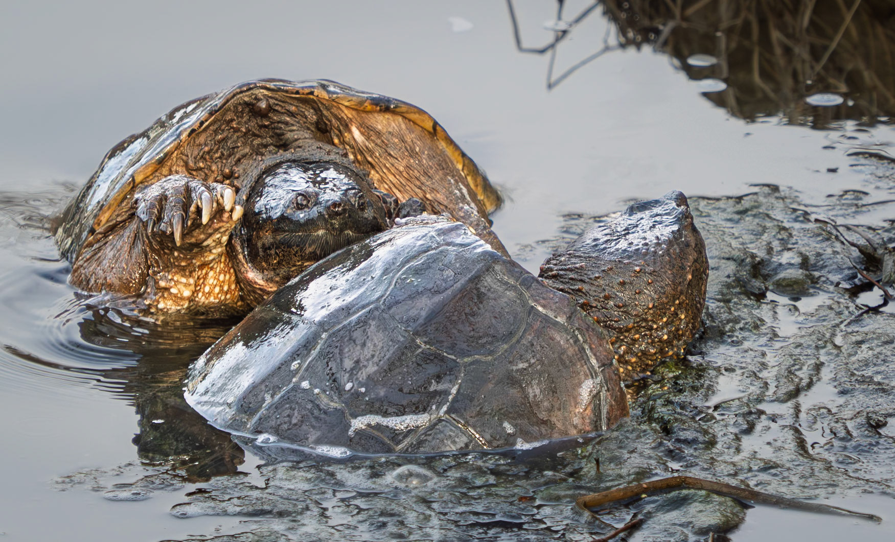 We caught some movement in the water off to the side - two massive snapping turtles tussling. They were still at it an hour later (A prelude to mating)