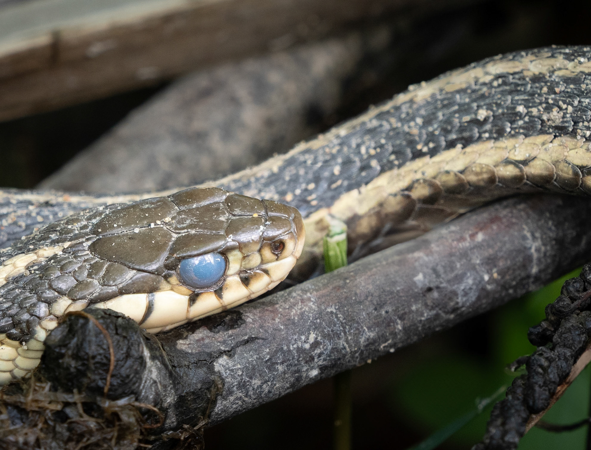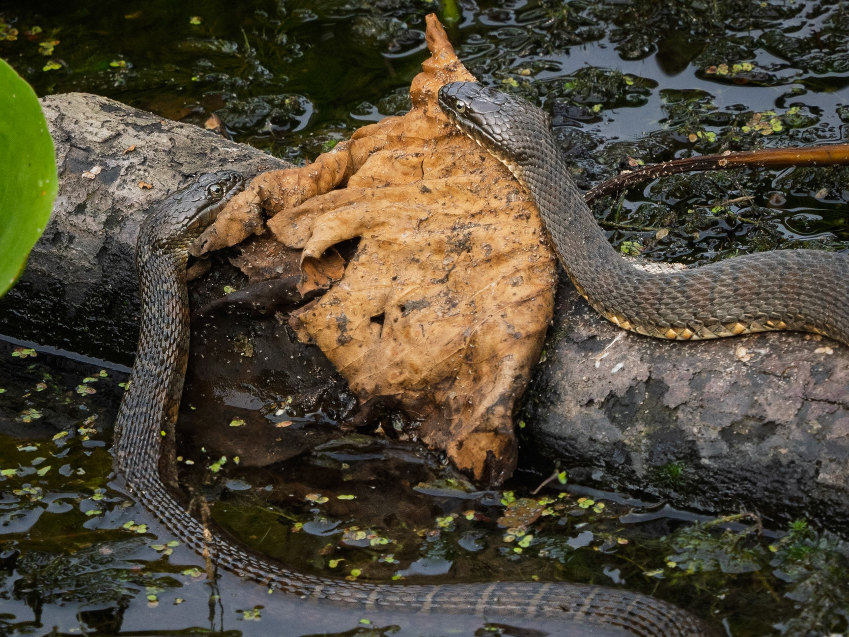 Snakes seemed relatively plentiful. A blue-eyed gatersnake. Their eyes go like this for a week or so before shedding their skin. A pair of watersnakes entertained us for about 30 minutes