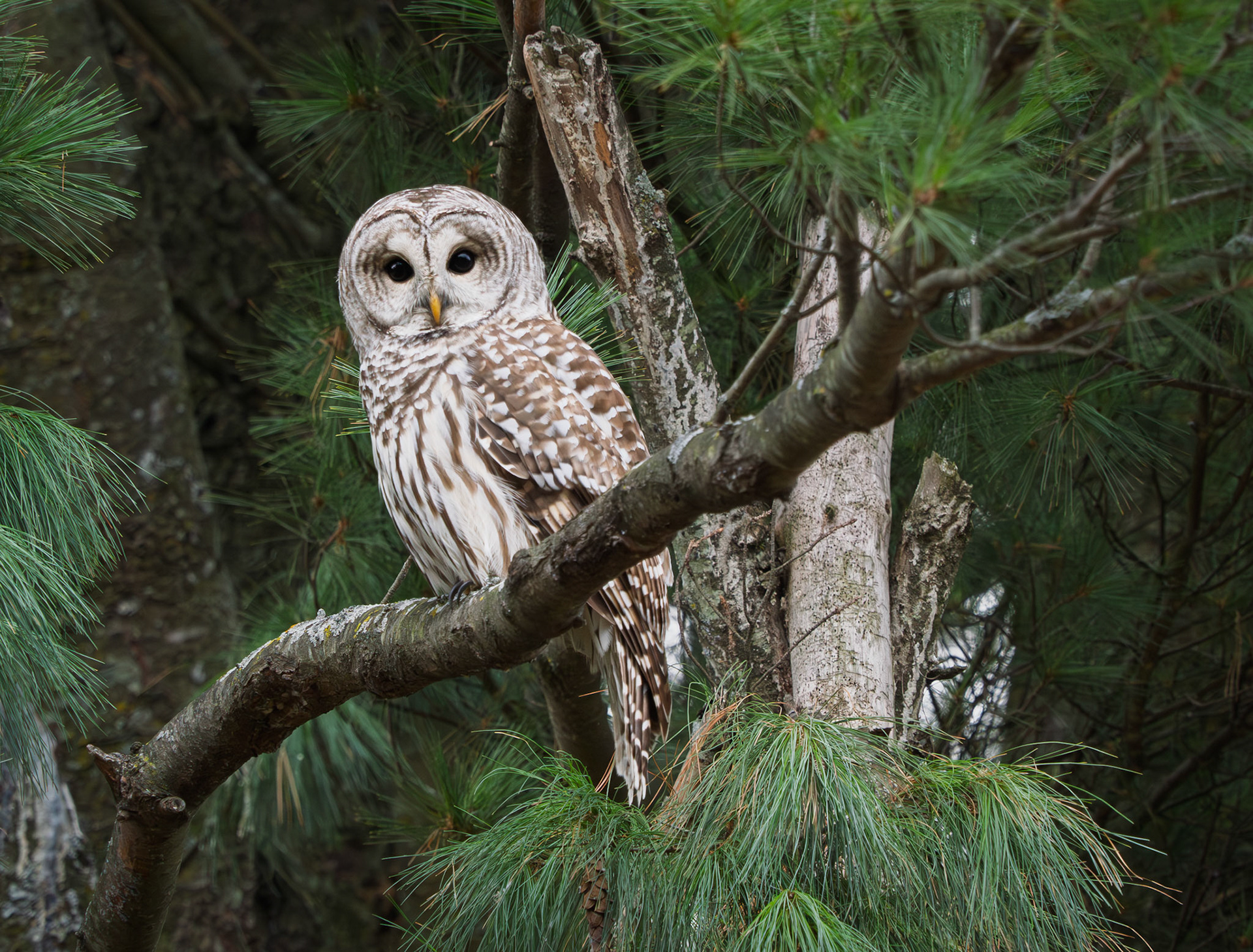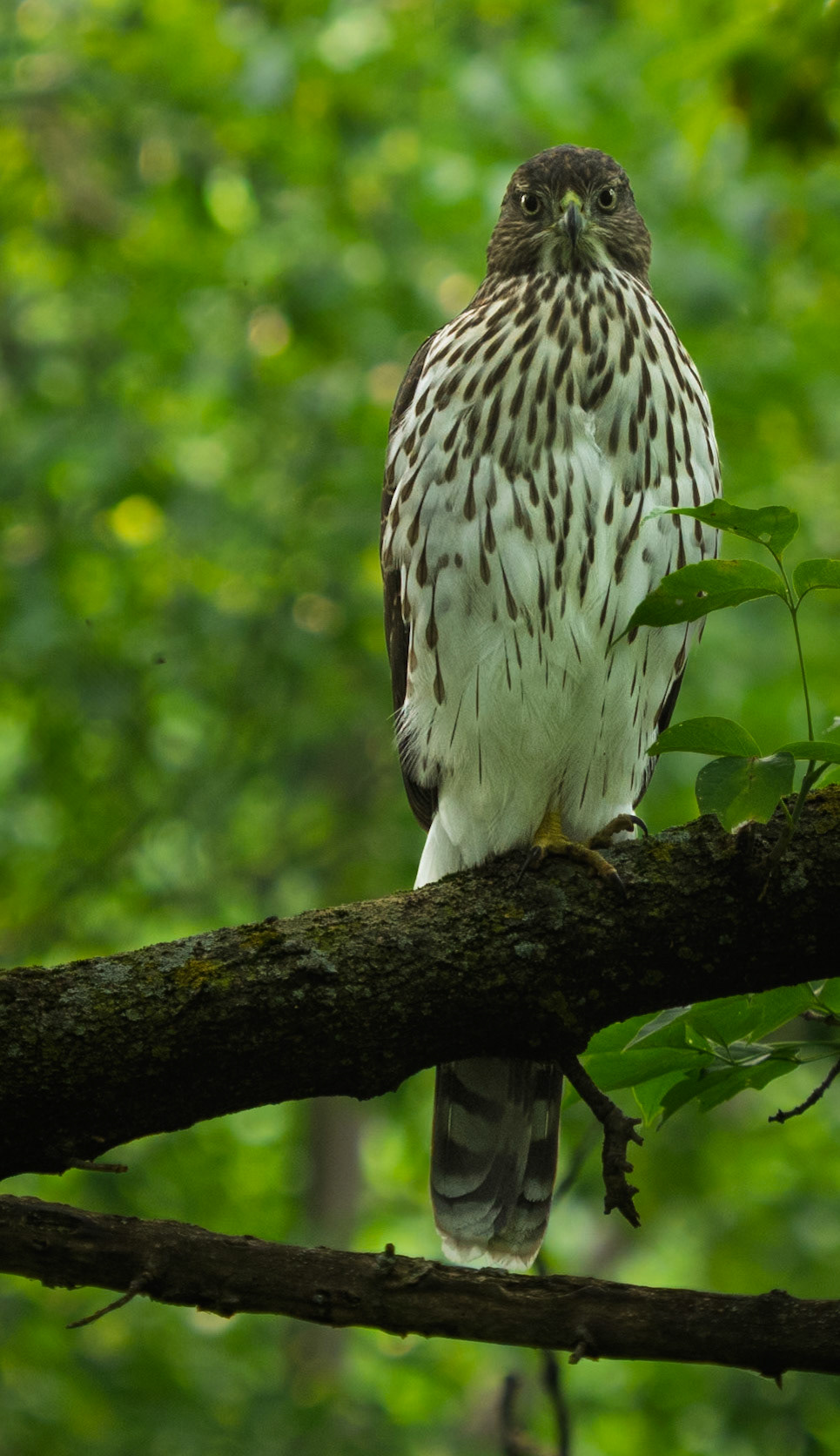 Juvenile mergansers, juvenile cooper's hawk at eye level about 25 feet away and a barred owl that was about the same distance away until it moved slightly higher into a pine tree