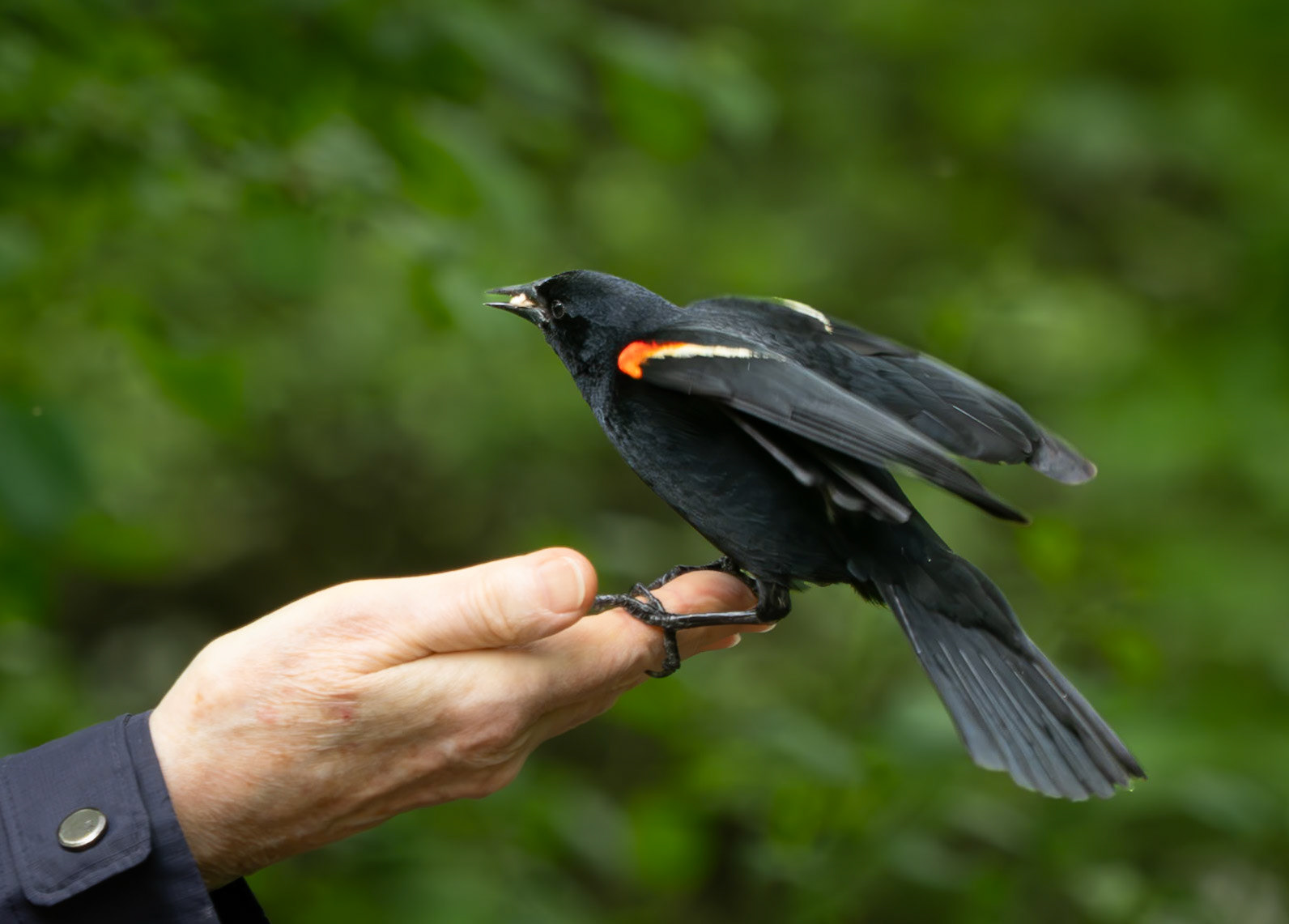 In the spring of 2024 I had a male red-wing blackbird that seemed to be looking for me to provide a hand-out. I didn't have with me, so no go. But it sure seemed like he would come to hand. This year we had a male (same one?) come to hand and two juveniles as well. They certainly caught our eyes