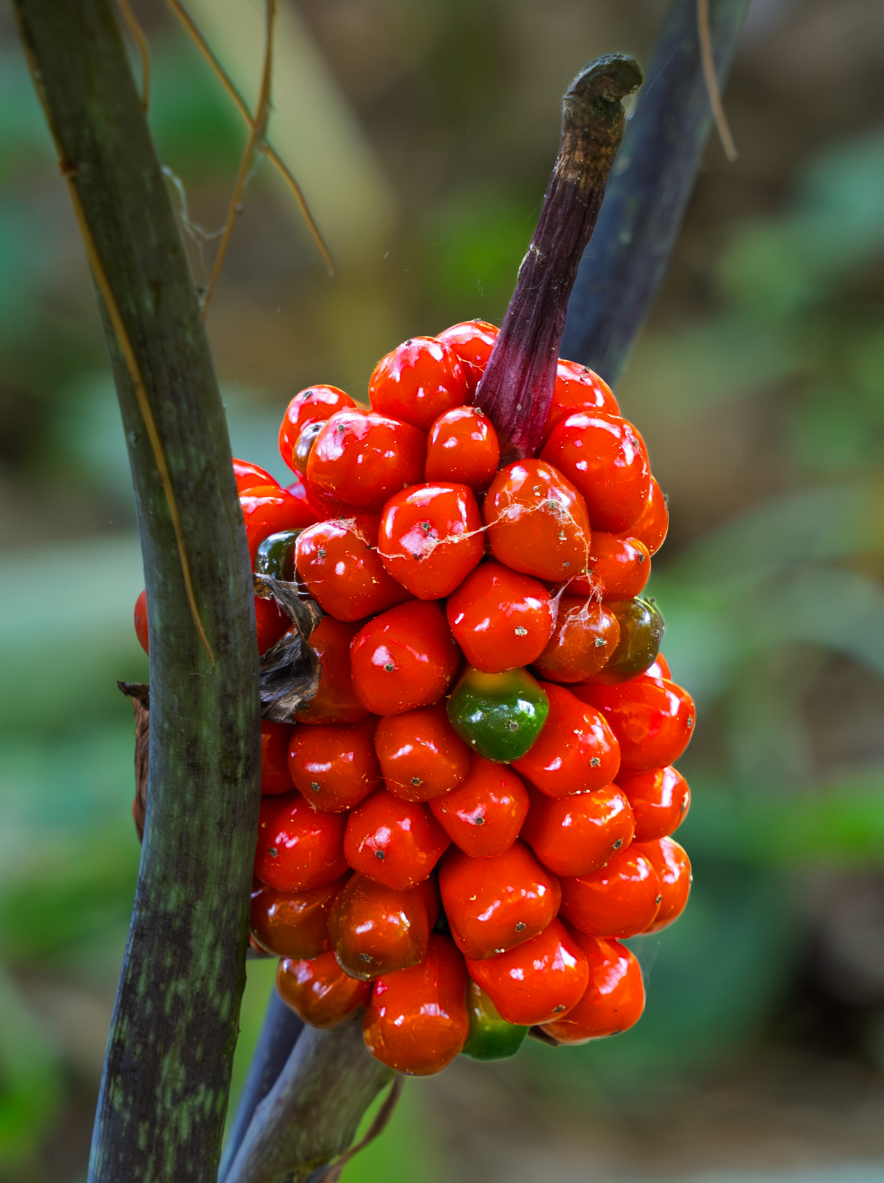A swamp milkweed's pod's difference caught my eye as did this beautiful bunch of jack-in-the-pulpit seed pods (Each "pea/bean" while have a number of seeds in it)